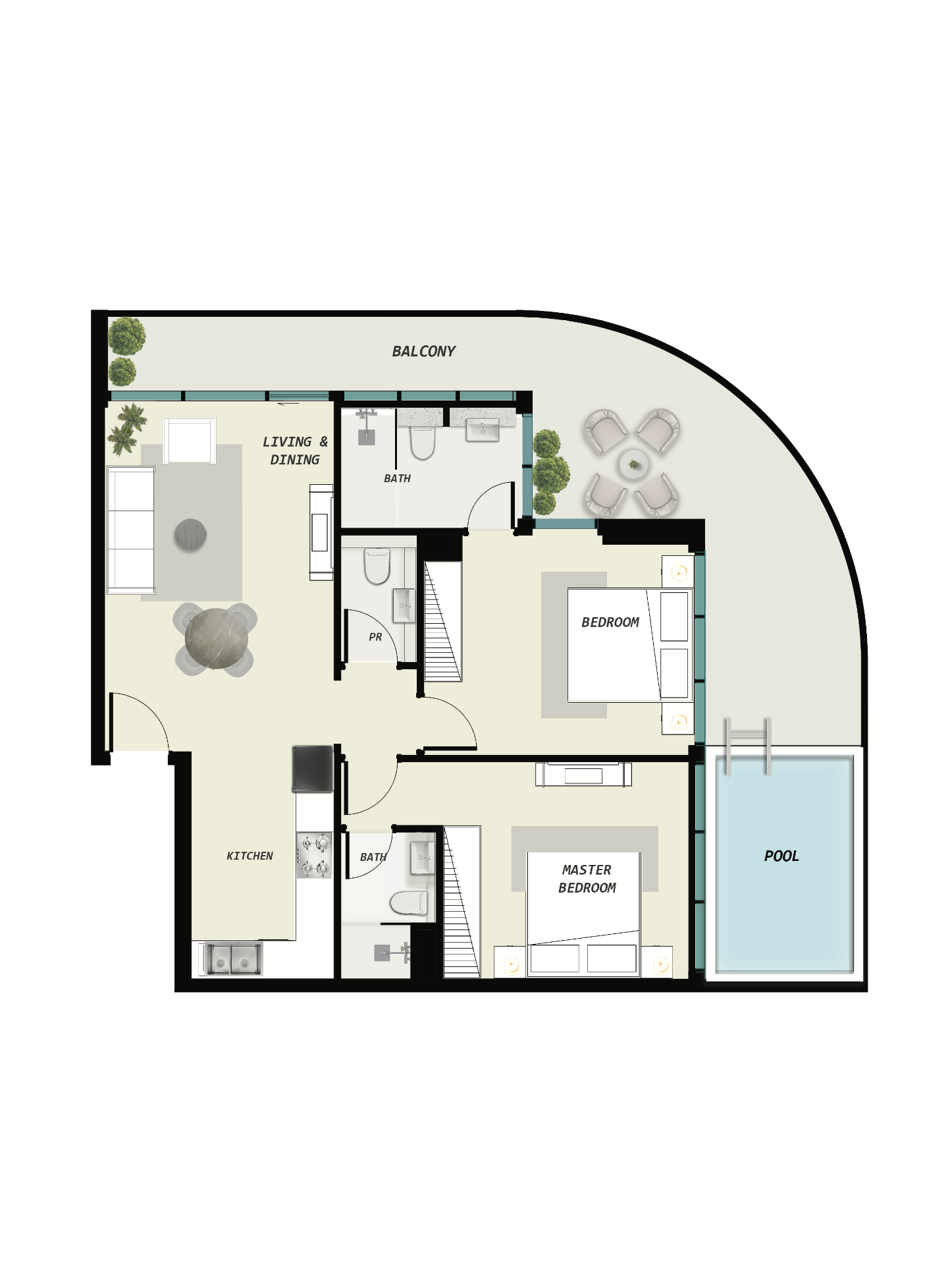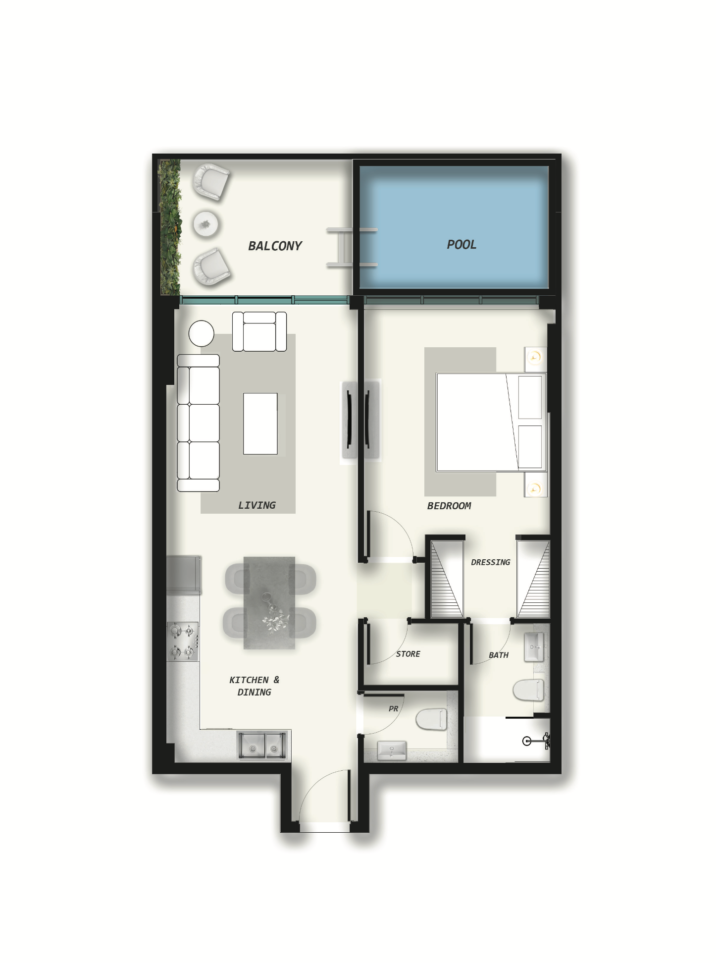 Profitez d'une piscine privée sur votre balcon, des espaces communs conçus pour la détente et la socialisation, d'une salle de sport ultramoderne, d'un cinéma en plein air pour vos soirées films, et d'une aire de jeux pour le bonheur des plus jeunes.